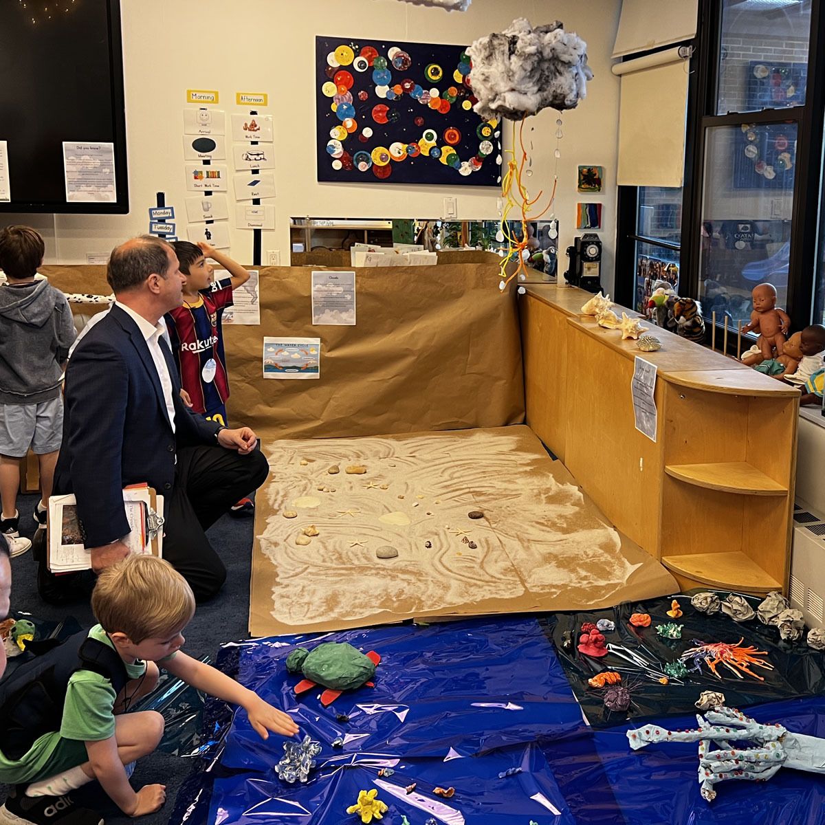 Nursery 4 students studied the earth and transformed their classroom into a desert, an ocean, mountains, and more!